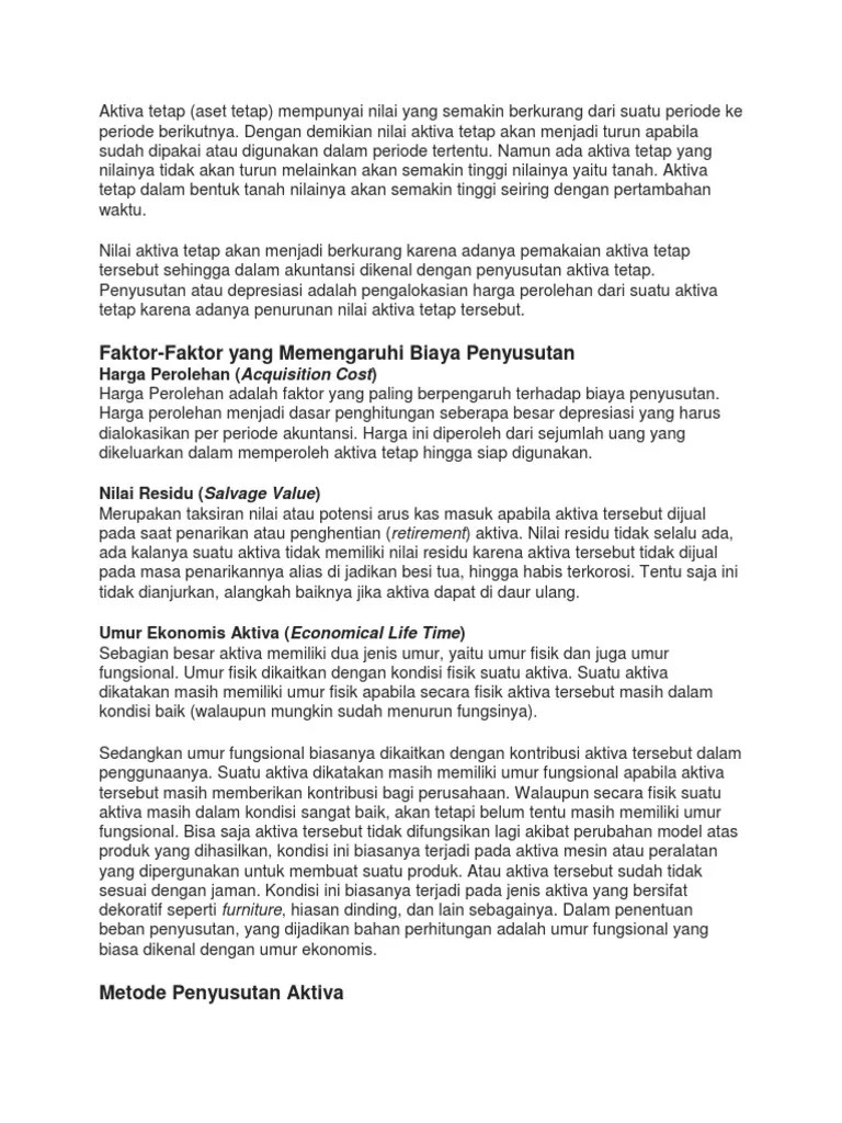 By artika nesa june 12, 2018. Diperoleh dari hadiah atau donasi aktiva tetap yang diperoleh dari hadiah atau donasi pencatatannya bisa dilakukan menyimpang dari prinsip harga perolehan. Namun, pada tahun 2021 varian baru dari mesin yang sama masuk ke pasar karena inovasi dalam teknologi. Terdapat 4 metode penyusutan aktiva tetap yaitu metode penyusutan garis lurus, metode penyusutan saldo menurun ganda atau double declining, metode penyusutan jumlah angka tahun, dan metode penyusutan unit produksi. Selain itu, masa pakai aset dapat dimaksimalkan dan waktu pergantiannya mudah diketahui.